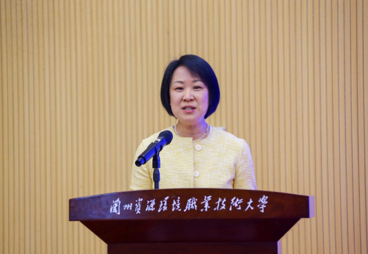 之后,王慧凌代表教学实践工作委员会向承办单位兰州资源环境职业技术大学颁发会议纪念牌。本次会议承办单位兰州资源环境职业技术大学校党委书记雷江红、教学实践工作委员会主任委员刘予东、下届会议承办单位云南能源职业技术学院副校长桂林斌进行承办会牌交接仪式。