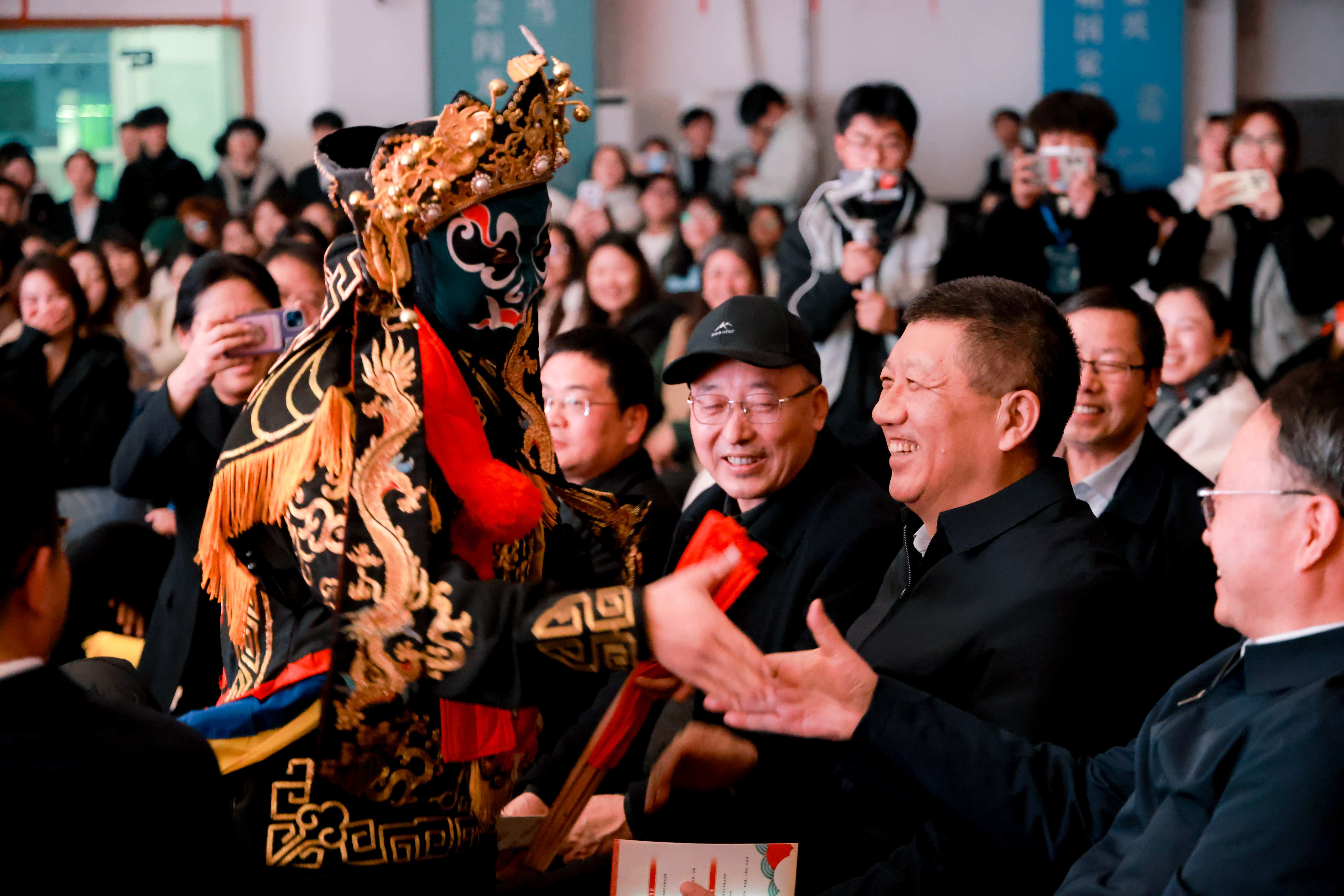 第四篇章“同心筑梦・向未来”将晚会推向高潮。陕西艺术职业学院带来的民族舞《石榴花开》,舞姿优美、寓意深远,象征着各民族像石榴籽一样紧紧相拥,彰显了民族团结的深厚情谊;戏曲《变脸》如魔术般瞬息幻化,一张张脸谱在转身拂袖间悄然更迭,技艺精绝,掌声不息,生动展现了非物质文化遗产的深厚底蕴;随后的歌曲联唱以青春之声串联经典旋律,音符跃动间洋溢着团结与憧憬,唱出了能院学子同心向前、共赴未来的明亮心声;最后,晚会在温馨而充满力量的尾声中圆满落下帷幕。