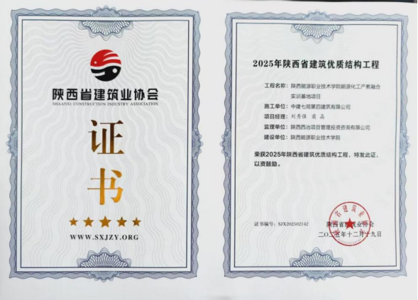 近日,陕西省建筑业协会公布评审结果,我校能源化工产教融合实训基地项目顺利通过评审,喜获“2025年陕西省优质结构工程”。