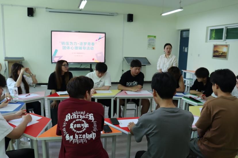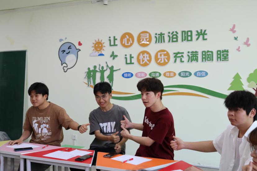 赵老师通过热身活动“拍一拍”让同学们了解压力的意义,带领同学们进行了一系列游戏。“我说你画”和“走出圈外”让同学们认识压力产生的原因,认识和分享学习工作中经常遇到的压力;“心有千千节”使同学们感受信任和合作带来的舒适感,体验主动交往的乐趣,帮助学员舒缓压力;“幸福清单”让同学们学会应对压力的基本方法。过程中,同学们积极互动,真诚分享,活动气氛热烈而和谐。