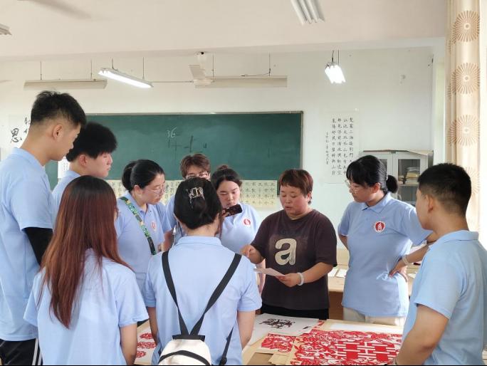 7月13日,文化振兴实践团走进华州区高塘中学拜访剪纸非遗传承人韩四全、郭佳,共同追寻非遗剪纸的传承与发展之路,共同挖掘非遗文化的当代价值。