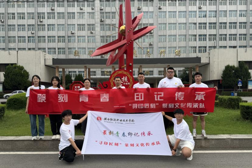 7月15日,由指导教师伊龙、王瑞娟、赵晨带领的陕能院“寻印匠刻”篆刻文化传承队一行10人前往陕西省蓝田县芸阁白鹿书院开展以“篆刻青春,印记传承”为主题的暑期社会实践活动,活动前举行了简短的出征仪式。