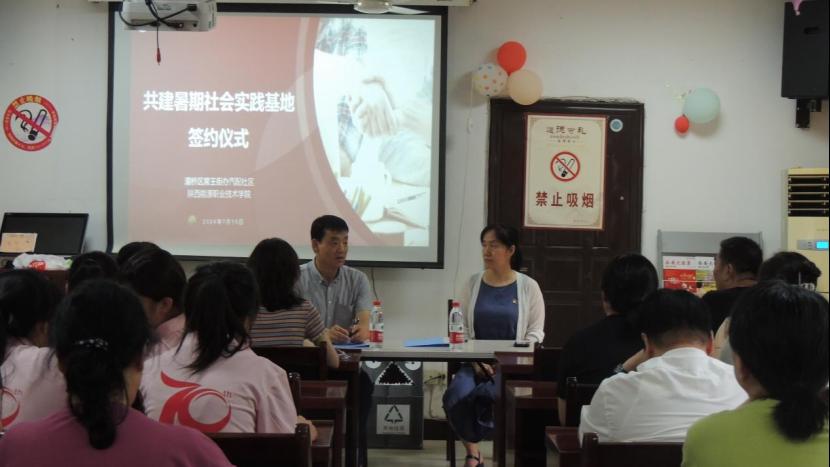 7月15日,“医心筑梦,同心相护”志愿服务实践队与灞桥区席王街道汽配社区共建社会实践基地,并在汽配社区会议室举行签约挂牌仪式。灞桥区席王街道汽配社区书记兼居委会主任刘春宁、副书记孙旭香、学校护理学院党总支书记房朋以及实践队师生和社区干部代表参加签约挂牌仪式。