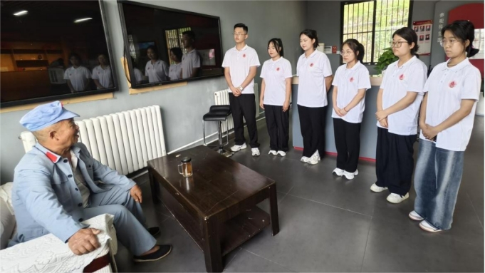 应杜天祥邀请,实践团下午专程转赴陈家坡会议旧址,参观陈家坡会议旧址展览,聆听杜天祥作的陈家坡会议主题党课并为他测量血压,宣传健康养生知识。