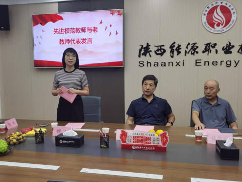 张栋对先进模范教师能够参加教师节座谈会表达了诚挚的感谢;青年教师代表为先进模范教师献上鲜花和真挚的祝福,表示将以模范教师为榜样,传承优秀师德,躬耕三尺讲台。