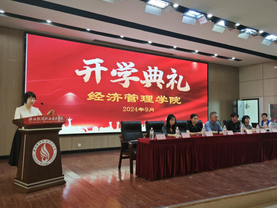 9月13日上午,经管学院在实训楼六楼报告厅举行2024级新生开学典礼。学院党政负责人、各教研室主任、专任教师、全体2024级学生及班主任参加典礼。典礼由综合办主任姜艳主持。