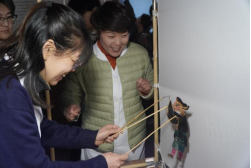 活动现场气氛热烈,一幅幅精美的剪纸作品和皮影角色错落有致地摆放着,吸引了众多社区居民前来观赏。同学们耐心地向社区居民讲解并示范,手把手教授非遗剪纸要领、技巧以及皮影角色灵活操作技能,让所有参与者深刻感受到了中华优秀传统文化的独特魅力。