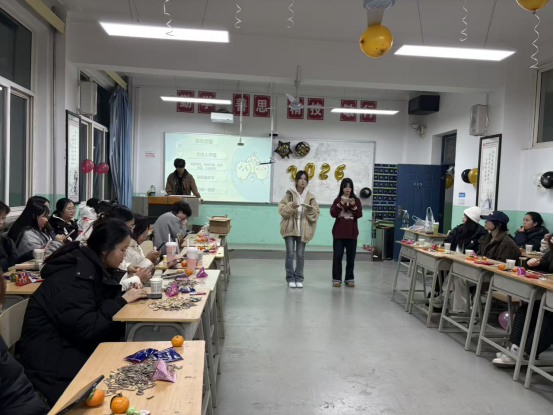 教室内暖意融融,处处洋溢着青春的活力与节日的喜悦。在展演环节,各类节目精彩纷呈,既有歌曲串烧、现代舞、小品等经典节目点燃现场气氛,更有融合专业特色的创意表演惊艳全场-短视频剪辑秀串联起班级年度成长瞬间,商务礼仪情景剧再现职场沟通场景,充分彰显了我院学子“学用结合、知行合一”的实践能力。在猜谜语、听歌识曲、抢凳竞技、你画我猜等趣味游戏互动环节中,师生协作、同学组队,欢呼声与加油声此起彼伏;最后,班主任送上的新年寄语温情恳切,既肯定了同学们过去一年的成长与进步,也寄予了对未来学业精进、技能提升的殷切期望。