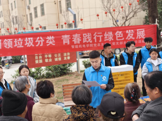 活动现场,志愿者们热情高涨、服务细致,围绕垃圾分类知识科普开展主题宣传。作为活动主讲的学生志愿者,通过现场讲解、互动问答、发放宣传资料等方式,向居民普及垃圾分类的意义、方法和技巧,帮助大家树立绿色环保理念。为增强群众参与积极性,活动还设置了“参与有礼”环节,向踊跃参与的居民发放鸡蛋、纸巾等实用小礼品,现场气氛热烈,互动频繁,居民纷纷表示“接地气、有收获”。通过开展活动,提升了社区居民对垃圾分类的认识,让青年学子在实践中增强了服务意识和社会责任感。志愿者们以实际行动诠释了“奉献、友爱、互助、进步”的志愿精神,展现了智能机电学院青年昂扬向上、勇于担当的精神风貌。