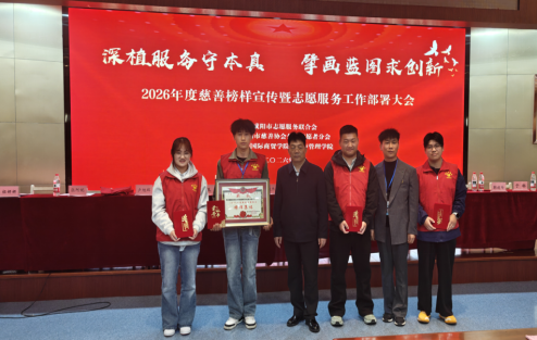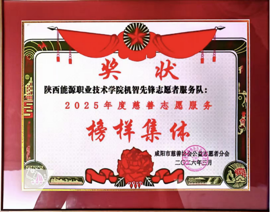 青春聚力践初心,志愿同行显担当。3月28日,由咸阳慈善协会公益志愿者分会举办的2026年度慈善榜样宣传暨志愿服务工作部署大会在陕西国际商贸学院举行,我校智能机电学院机智先锋志愿服务队受邀参会,并以蓬勃向上的志愿服务质量和时长荣获“2025年度慈善志愿服务榜样集体”。