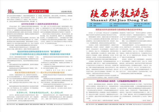 (2)6月15日,陕西省科学技术协会发布了关于第三十三届“科技之春”宣传月活动情况的通报,学校作为本届全省唯一一所入选的高职院校,已连续4年获表彰,充分彰显了学校在科技创新和科普宣传方面的持续影响力和突出成绩。