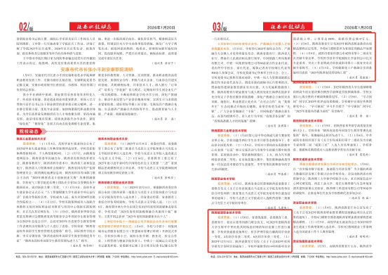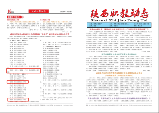 2.获奖荣誉。(1)1月6日,省委统战部、省委教育工委、省教育厅、省民宗委等四部门联合发文,对2025年度陕西省大学生铸牢中华民族共同体意识网络知识竞赛工作进行通报。学校荣获通报表扬单位。医学护理学院白璐茜同学荣获一等奖,4名同学荣获二等奖,6名同学荣获三等奖。(2)2025年12月31日,陕西省教育厅印发《关于下达2025年度科学研究计划项目的通知》,学校申报推荐的14项科研项目全部获批立项,立项率达100%,获批经费总额47万元。(3)1月4日,陕西省教育厅公布2025年陕西省职业教育在线精品课程认定结果,学校8门课程获评为省级在线精品开放课程。(4)1月8日,咸阳市委组织部公布咸阳市第十二批有突出贡献专家名单,学校医学技术学院副院长李蕊同志以扎实专业素养、突出工作业绩成功荣获咸阳市第十二批有突出贡献专家称号。(5)1月13日,学校能源化工产教融合实训基地项目喜获“2025年陕西省优质结构工程”。