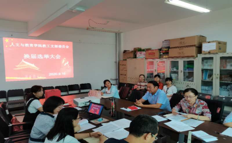 9月16日,人文与教育学院召开党员大会,进行党支部换届选举,大会由党总支书记于秋玲主持。