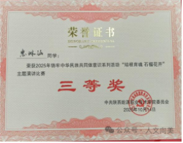 我院坚持将中华优秀传统文化融入教育教学全过程,持续深化“以文化人、以文育人”育人机制,系统开展传统文化传承与弘扬活动,帮助师生深刻把握传统文化的历史底蕴与时代价值。学院师生们凭借深厚的文化积淀与优异的临场发挥,先后斩获第七届中华经典诵写讲大赛省级三等奖、语文报杯中学生主题征文大赛优秀奖、“铸牢中华民族共同体意识”系列活动之“培根育魂石榴花开”主题演讲比赛校级三等奖、校级讲书人比赛二等奖等,相关实践举措与成果获得高度认可。