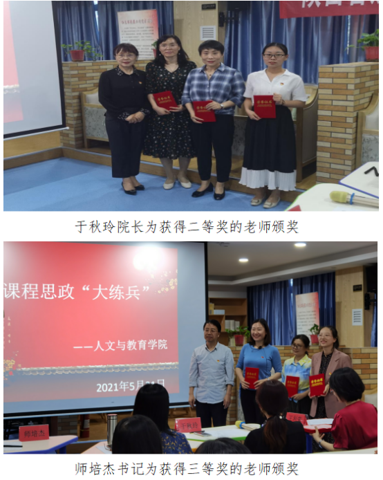 比赛前期经过四个教研室(数理教研室、英语教师、综合教研室、语文教研室)的严格选拔,选出8位教师参加学院的决赛。参赛教师结合自己的专业特色,深入挖掘各门课程中蕴含的思政元素、育人功能,真正的做到了思政“润物细无声”。比赛结束后,董莉利老师对各位教师的比赛表现给予总结概括并提出建议,希望大家在此基础上再接再厉。师培杰书记作了总结概括。