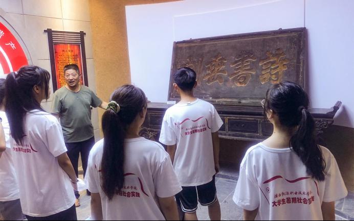 陈老师为队员讲解“诗书垂训”牌匾的历史背景
