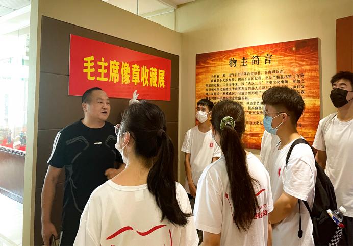 随后,队员们来到了毛主席像章展厅,由毛主席纪念章收藏者马利春老师向同学们介绍了陈列的各种展品。马老师详细为队员们介绍了朝鲜战争时人民子弟兵所用的生活用品,毛主席前往安源的经历,展厅中毛主席像章的由来和毛主席人像陶瓷品。数量巨多的藏品让队员们震撼不已,也从藏品的背后看到了当今幸福生活的来之不易。