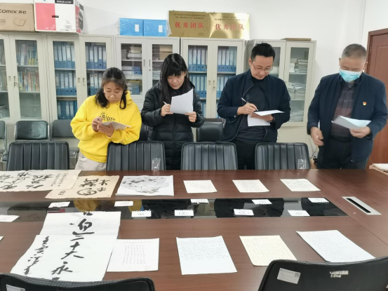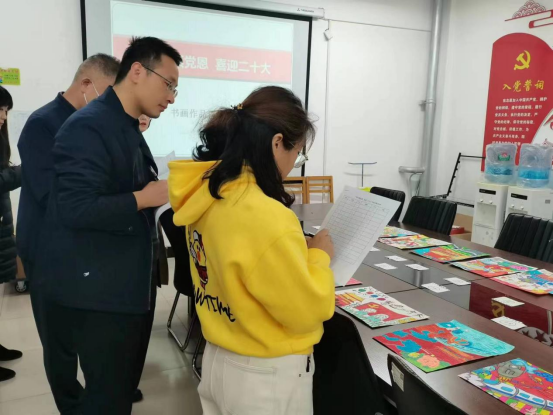 为全面贯彻在美育教育中落实立德树人的根本任务,10月12日下午,人文与教育学院美育中心组织的“师生颂党恩 喜迎二十大”书画作品评选活动在办公楼508会议室举行。评委由我校经济管理学院书记张栋、建筑与测绘工程学院院长李浩、医学技术学院副书记韩晓磊、医学技术学院副院长李蕊、人文与教育学院副院长王利荣组成评审组。