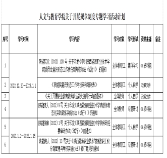 按照学校《关于开展规章制度专题学习活动通知》的要求,2022年12月20日至2023年3月1日期间,我院开展了学校规章制度专题学习活动。学院详细制定了学习方案、扎实开展了线上线下学习活动,共学习制度文件30余份。学院执行三个阶段(准备阶段、行动阶段、稳固阶段),通过自主学习、集体学习、专题研讨等形式使每一位教职工更加清醒地认识到学习规章制度、遵守规章制度的的重要性和紧迫性。
