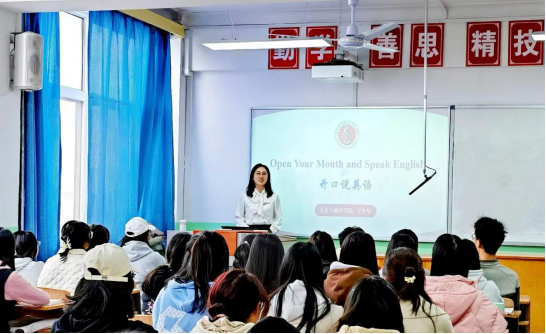 讲座过程中,王少华结合多年英语教学经验与同学们积极互动,挖掘各种因素激发同学们开口说英语的兴趣,并针对中文思维的英文化改造、简单句复杂化表达、如何通过听英文歌曲、英语趣配音等快速掌握口语中的语音语调方面与现场同学进行沟通交流。王少华强调,口语练习最重要的就是自信,其次是要多说、多用,不能半途而废,她希望同学们多看一些英语国家的影视剧,创造一个良好的语言学习环境。同学们纷纷表示受益匪浅,对今后提高锻炼口语能力有很强的实践性和操作性。