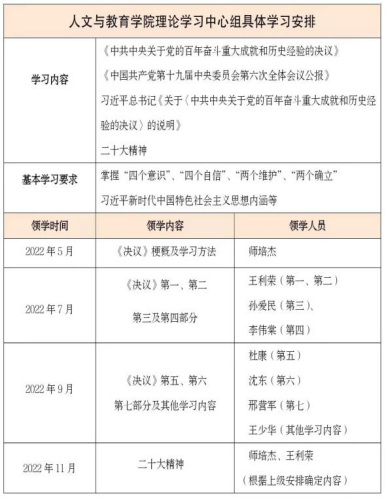 随后,师培杰强调,要把深入贯彻落实党的十九届六中全会精神作为重大政治任务,坚持以习近平新时代中国特色社会主义思想为指导,增强“四个意识”、坚定“四个自信”、做到“两个维护”,以史为鉴、开创未来,埋头苦干、勇毅前行,扎扎实实做好人文学院各项工作。