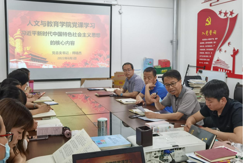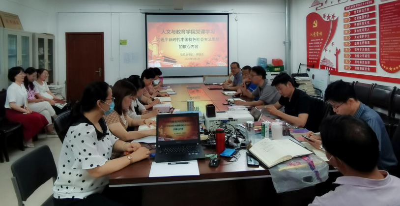 6月1日下午,我院党总支书记师培杰在学院508会议室讲了题为《习近平新时代中国特色社会主义思想的核心内容——“十个明确”和“十四个坚持”》的专题党课。人文与教育学院全体党员参加了本次党课学习。