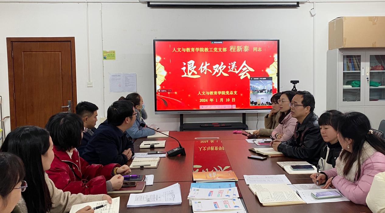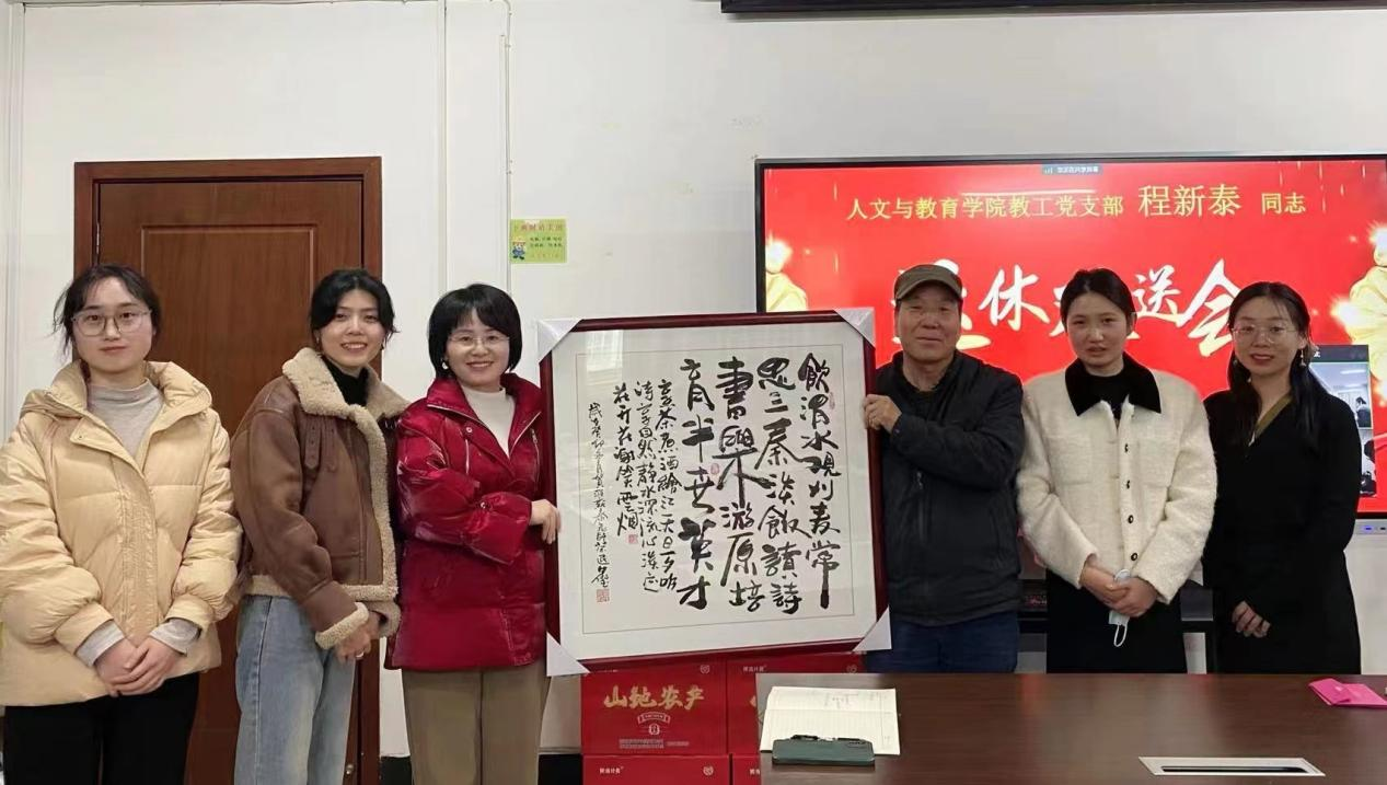 1月10日下午,我院党总支在学院会议室,为教工党支部即将退休的党员程新泰同志举行了一场简单而又温馨的退休欢送会。党总支宣传委员王少华主持,全体党员参加。