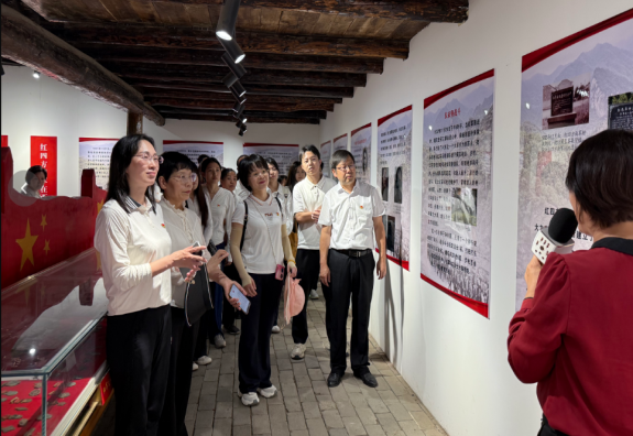 大家首先来到了红军过境户县陈列馆。该馆位于西安市鄠邑区石井街办土门村,于2019年10月建成,展示了红四方面军、红二十五军、红七十四师在长征期间过境户县的光辉历史。大家在讲解员的带领下,依次参观了各个展厅。通过丰富的历史图片、珍贵的文物史料以及逼真的场景复原,大家仿佛穿越时空,回到了那段波澜壮阔的革命岁月。红二十五军在户县驻扎期间,军政委吴焕先在此给中央写了7000多字的信,建议创建陕甘革命根据地,为党中央决策提供了重要参考。党员们认真聆听讲解,不时驻足观看,深刻感悟革命先辈们坚定的理想信念、顽强的斗争精神和深厚的为民情怀。不同群体间还相互交流感悟,在红色历史的浸润下,思想得到了进一步的统一与升华。