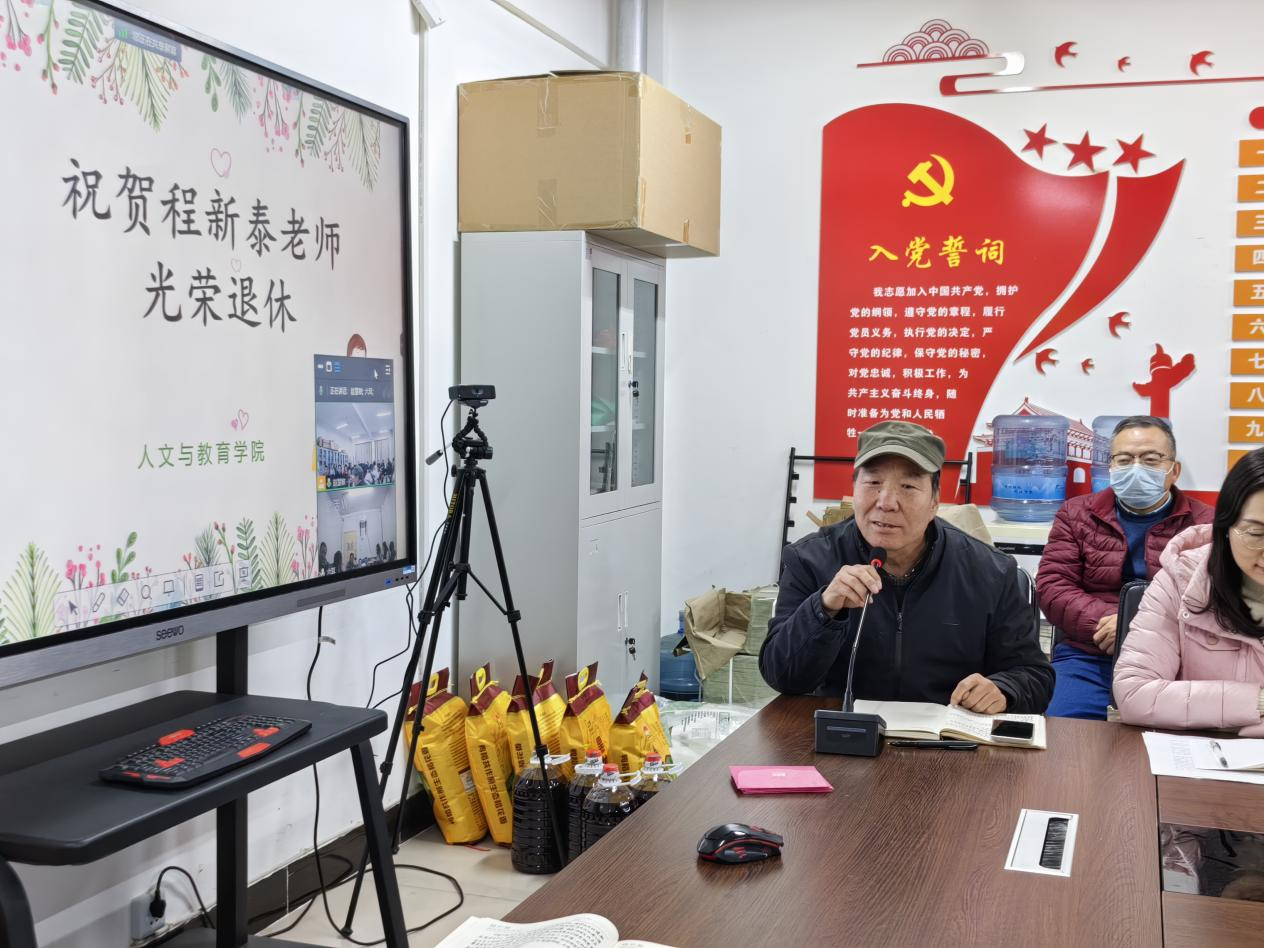 紧接着,我们精心策划了一场温馨而特别的欢送会,为即将退休的老教师程新泰送上祝福与感谢。我院党总支书记买中傲为程老师送上了慰问品和书法作品,回顾了程老师三十年如一日的辛勤付出,赞扬了他无私奉献、爱岗敬业的精神。