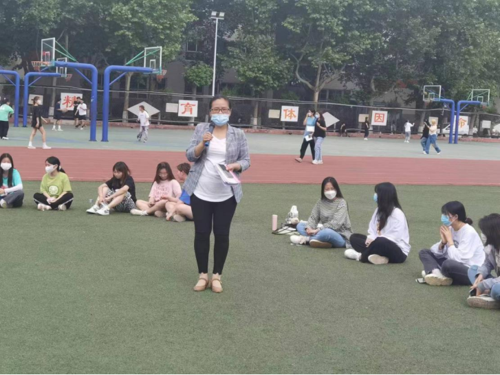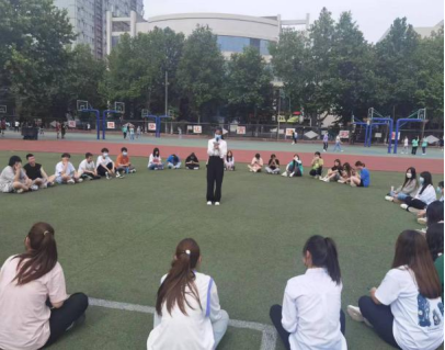 5月19日下午,37名学生在操场上开展“沐浴心育阳光 健康快乐成长”心理团辅活动。