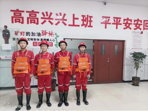 根据活动安排,实践团机电专业小分队进入矿井一线工作面进行学习。入井前,矿方指导老师徐曦对实践团成员进行了安全培训,成员们按要求更换了工作服、佩戴了安全帽、胶靴、矿灯、自救器等装备。在井口安全确认后由徐曦老师的带领下乘坐罐笼式提升机进入到深500米的井下,参观了永久避难硐室、中央变电所、中央水泵房、超磁水处理硐室等地方。