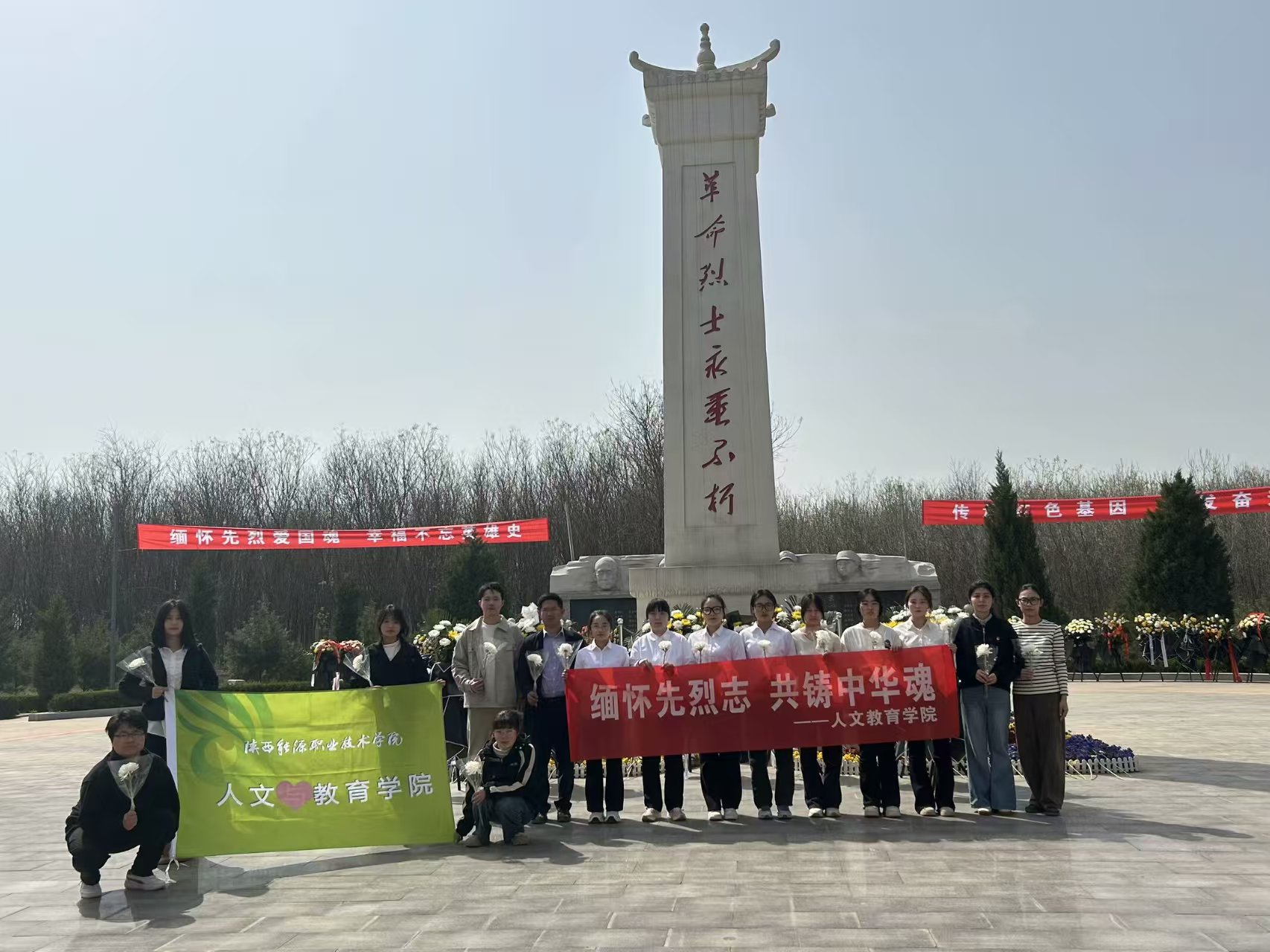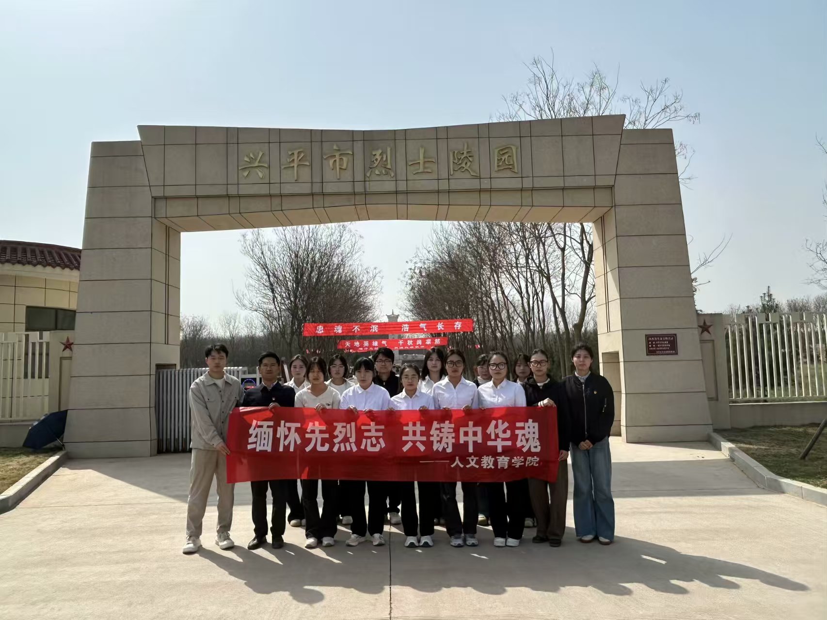 为缅怀革命先烈,传承红色基因,弘扬爱国主义精神,2025年4月3日,人文教育学院组织师生前往兴平市烈士陵园,开展“缅怀先烈志 共铸中华魂”祭奠活动。师生们怀着无比崇敬的心情,向为国家和人民英勇献身的革命先烈致以最崇高的敬意。