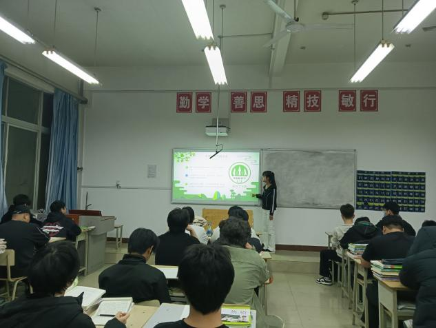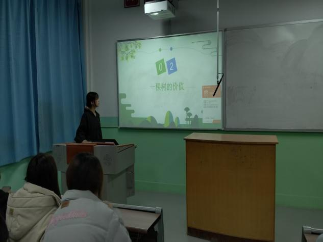 活动伊始,各班团支书担任宣讲员,运用多媒体手段向同学们系统讲解全球气候变化趋势、生物多样性保护现状及我国生态治理成就。通过展示 "一棵树的价值" 数据图谱(一棵树年均吸收二氧化碳 11 公斤,25 年固碳能力达 275 公斤),结合"每15分钟消失1个物种" 等警示案例,生动诠释了 "生态兴则文明兴" 的深刻内涵。宣讲中特别介绍了我国植树节的历史沿革:1915 年由凌道扬等倡议设立,最初定于清明节;1979 年第五届全国人大常委会第六次会议正式确立3月12日为植树节,以纪念孙中山先生的植树造林功绩。