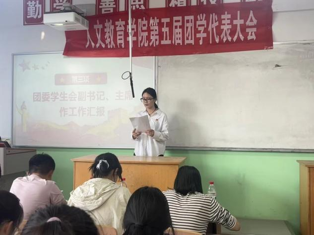 为系统总结我院过去一年团委学生会工作成效,持续强化团委学生会的引领示范作用,充分凝聚青年学子助力学院建设发展,同时民主选举产生人文教育学院第五届共青团委员会委员及学生委员会委员。我院于2025年6月26日在教学楼712教室召开第五届团学代表大会。人文教育学院党总支书记买中傲,团委书记刘博洋,团委副书记张涵之,辅导员贺美然,心理辅导员刘芝彤及全体团学干部成员参加大会。