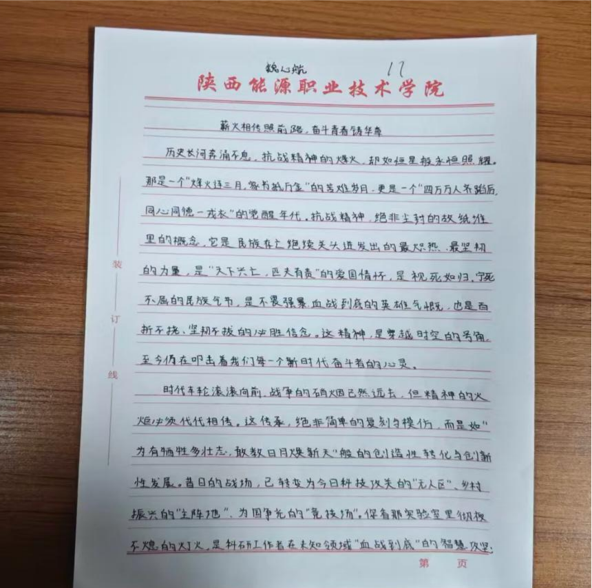 9月18日开展了“传承抗战精神,做新时代奋斗者”主题书法、征文比赛,得到全体学生的积极响应与热情参与。书法比赛中,参赛者们挥毫泼墨,以楷书、行书、隶书等多种书体,书写下与爱国、抗战相关的经典语句,一笔一划间尽显对红色精神的崇敬;征文比赛中,同学们围绕抗战历史展开深度思考,结合自身感悟写下真挚文章,字里行间满是青年一代对历史的思考与对未来的期许。经过专业评审,两类比赛各评选出一、二、三等奖,为活动画上圆满句号。