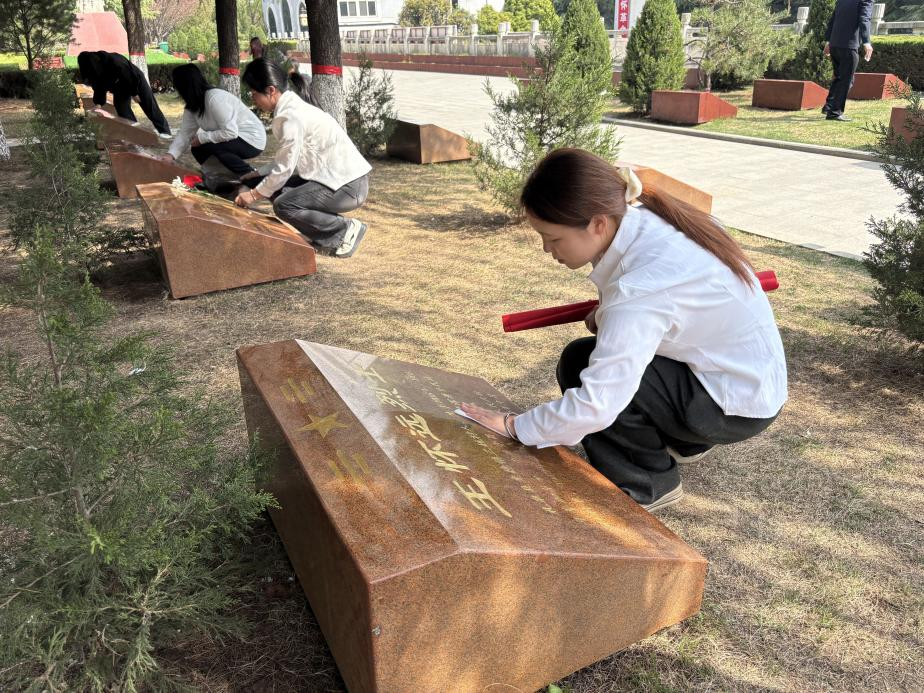 宣誓结束后,全体师生有序环绕烈士纪念碑瞻仰,随后手持清洁工具擦拭纪念碑,以实际行动致敬先烈。