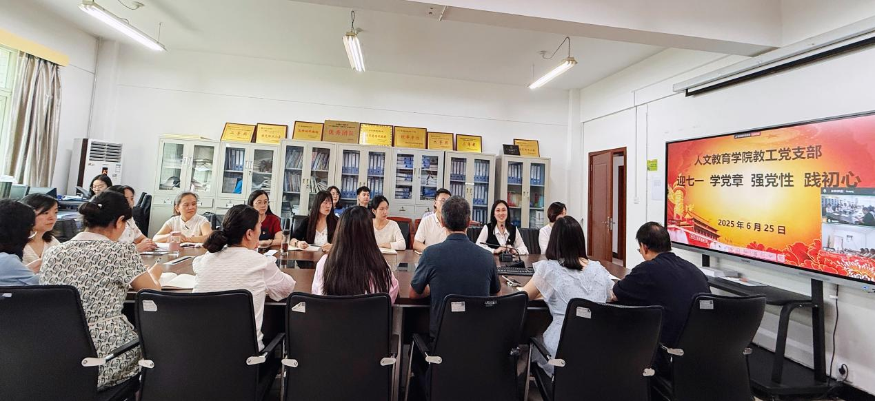 为纪念中国共产党成立104周年,深入贯彻中央八项规定精神学习教育,大力弘扬伟大建党精神,激励党员担当作为,6月25日,人文教育学院教工党支部于学院会议室组织开展了以“迎七一 学党章 强党性 践初心”为主题的党日活动。活动由党支部书记王少华主持。