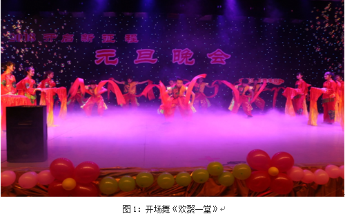 晚会在喜庆欢乐的舞蹈《欢聚一堂》中拉开帷幕,晚会节目形式多样、内容丰富,积极向上,师生同台表演,其乐融融。最后,晚会在歌曲《让我为你唱首歌》中落下帷幕。