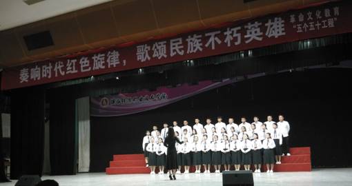 2018年11月7日,为贯彻落实革命文化教育实践“五个五十工程”,增强大学生红色文化基因,培养和提高学生的爱国情结,经济管理学院与化学工程学院在菊园四楼联合举办“奏响时代红色旋律,歌颂民族不朽英雄——红歌汇演”。
