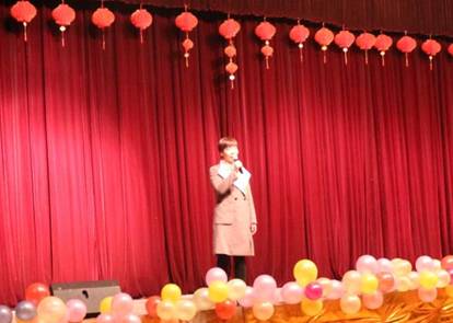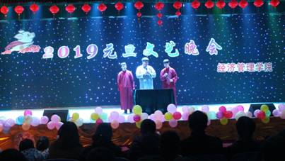 2018122019:00时,经济管理学院在菊园四楼举办了2019年元旦文艺晚会。我院党总支书记李鲜玲、副院长马百皓、党总支副书记李海霞、学生教育管理科科长刘玲等多位老师和全体学生共同观看演出。