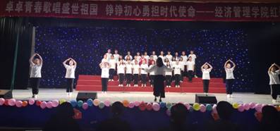 2019年10月31日晚7:30,经济管理学院在菊园4楼举办以“卓卓青春歌唱盛世祖国,铮铮初心勇担时代使命”为主题的班级红歌合唱比赛,用嘹亮的歌声唱响爱国旋律。马百皓院院长、李鲜玲书记、学管办主任姜艳老师、辅导员田冲、蒋文老师、班主任及校团委姚娜老师和机信学院王倩出席并担任评委。