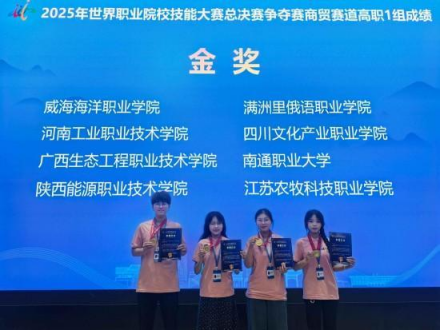 2025年8月27日至28日,2025年世界职业院校技能大赛总决赛争夺赛商贸赛道(高职组)在陕西财经职业技术学院、陕西工业职业技术学院和陕西能源职业技术学院举办,来自全国各地的216支代表队齐聚一堂、同台竞技。我校参赛队伍在陕西财经职业技术学院参赛,凭借精湛的技术力量、稳定的现场发挥、出色的团队协作,最终斩获金奖。该项目由信息商务学院杜娟、夏梦迪担任指导教师,程小东、欧晓莉、钱紫娟、杨武倩四位同学组成。