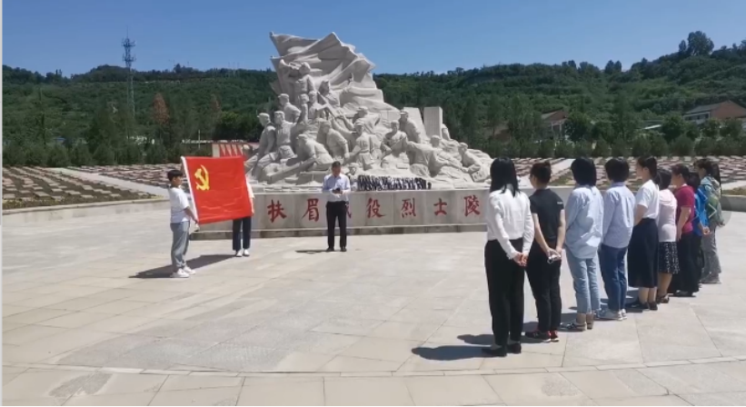 参观完纪念馆后,党员同志跟随党总支书记张栋同志来到了扶眉战役烈士陵园,在烈士陵园前,张栋书记带领大家重温了入党誓词。随后,党员同志向烈士进行了默哀、鞠躬。