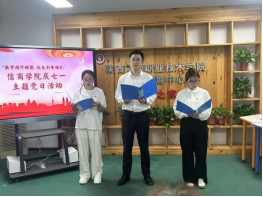 为庆祝中国共产党成立104周年,7月1日上午10时,信息商务学院学工党支部在教师发展中心开展"追寻红色足迹 赓续奋斗精神"主题党日活动。党总支书记赵亚玲、学工支部教师党员及学生预备党员线上、线下共35名师生党员齐聚一堂,通过"学、誓、奖、诵、观"五大环节,共上生动党性教育课。活动由党支部书记杜康主持。