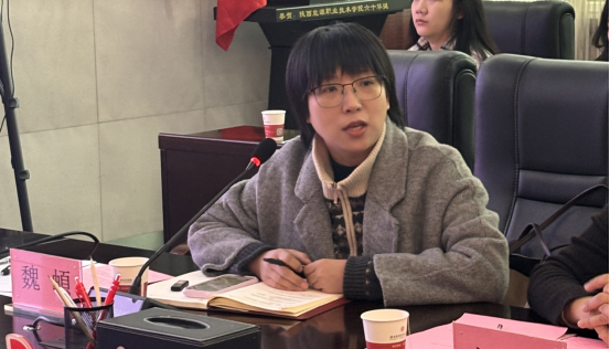 信息商务学院商务与物流教研室主任魏頔介绍了教工1党支部与教研室建设情况,分享了通过专业优势助力乡村振兴、推进教材建设和课程思政团队建设的实践经验,以及在技能大赛组织、岗课赛证融合育人等方面的创新举措。