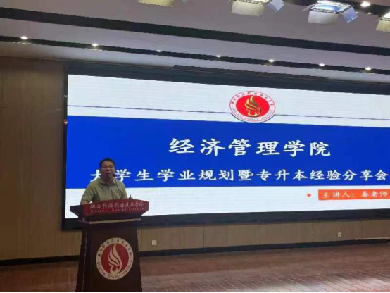 为进一步推动经济管理学院的学风建设,营造良好学习氛围,充分发挥榜样的引领作用,让同学们对专升本考试有更加充分的认识和了解,充分掌握专升本的学习技巧,帮助同学们做好对未来的学习规划,陕西能源职业技术学院经济管理学院2024年6月5日在第一实训楼6楼举行了“升学规划,创新创业”主题分享会。