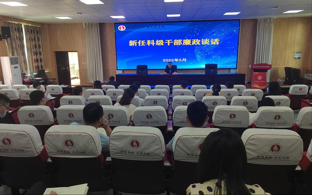 5月30日上午,校纪委组织新提任十七名科级干部开展集体廉政谈话,党委副书记、纪委书记张普礼作廉政讲话。
