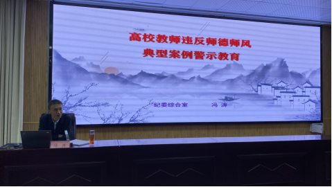 开展警示教育,筑牢思想防线。一是邀请省教育厅纪检组周鹏学主任为全校处科级干部做《高校违纪违法典型案例警示教育》专题报告,报告通过典型案例分析,以案说法、以案释纪、以案示警,提升警示教育作用。二是组织校领导班子成员集体阅看《陕西省被查处违纪违法领导干部忏悔录》,组织全体党员观看《金融反腐正风纪》,通过观看警示教育片用“身边事”教育“身边人”、用“同类事”教育“同类人”,引导党员、干部受警醒、明底线、知敬畏。