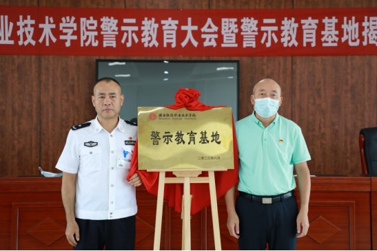 陕西省西安监狱党委委员、副总经理强希望、学校党委副书记任向明为“陕西能源职业技术学院警示教育基地”揭牌。