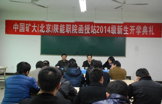 2014年2月28日下午三点整,中国矿大(北京)陕能职院函授站2014级新生开学典礼在我院培训楼216教室隆重举行。参加本次开学典礼的有中国矿业大学(北京)继续教育学院院长刘社育、陕西能源职业技术学院继续教育学院院长贾雨顺、成教部副主任赵亚玲及2014级专升本新生。本次开学典礼由成教部副主任赵亚玲主持。